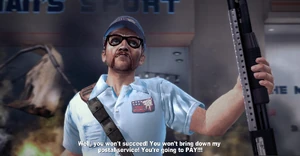 - C'est le seul psychopathe du jeu qui vous donne du Zombrex en récompense après sa défaite.