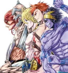 Les treize combattants divins sont : Thor, Zeus, Poséidon, Héraclès, Shiva, Gautama Bouddha, Vaisravana, Loki, Odin, Susanoo, Apollon, Anubis et Belzébuth.