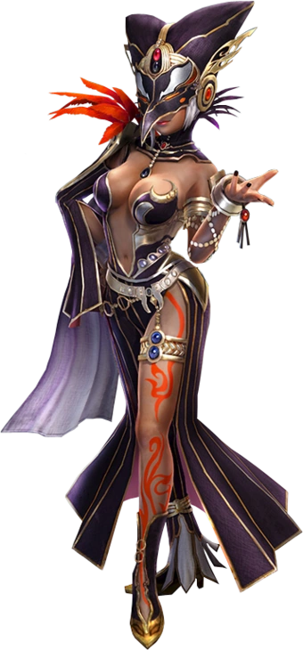C'est une sorcière noire qui manie un sceptre magique au combat et la maîtresse de Volga et de Iscerro.