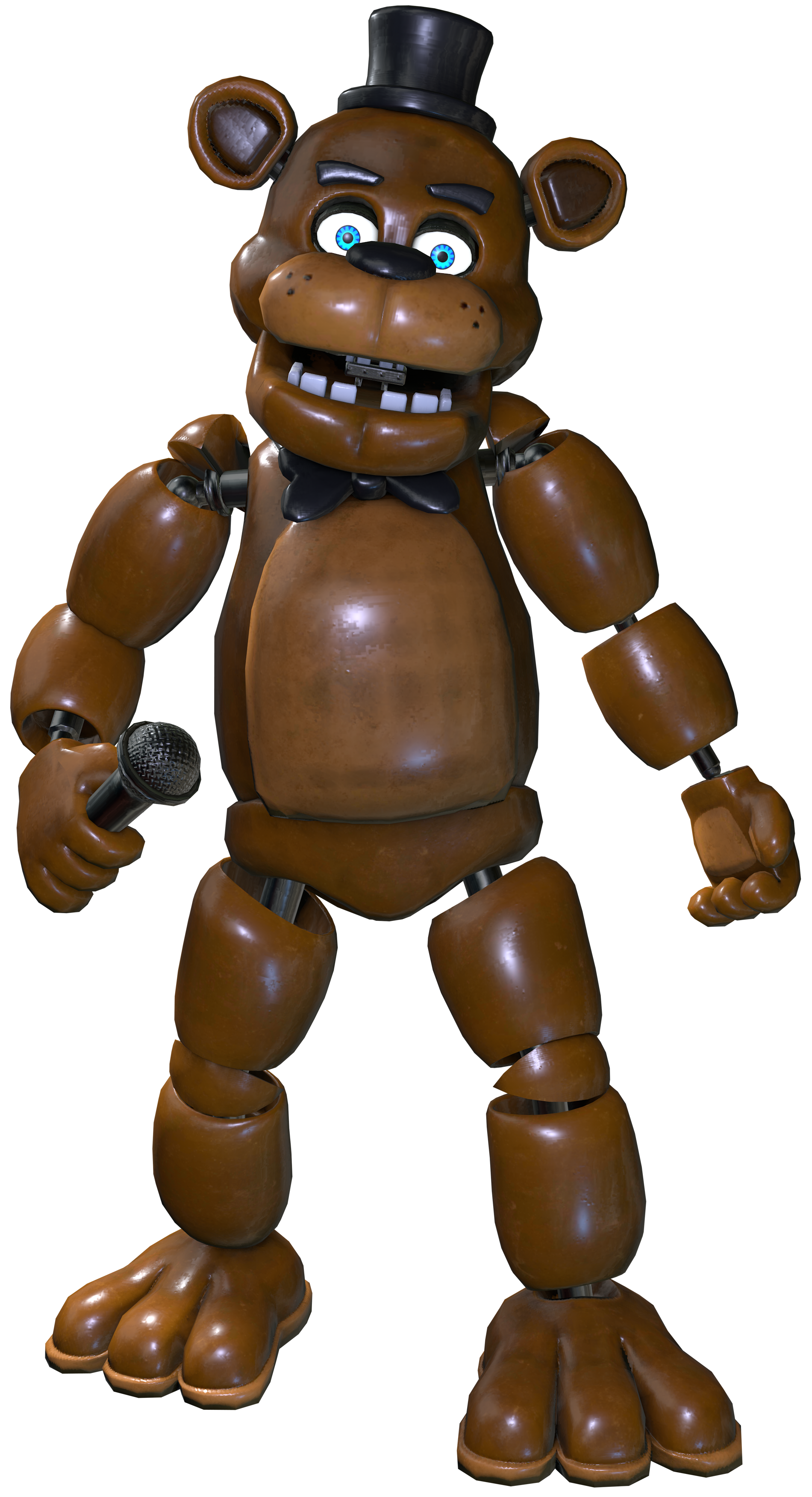 | “ | Une animatronique ours brun; porte un nœud papillon noir et un haut-de-forme noir; tient un microphone avec sa main droite dont il se servira pour vous tuer avec créativité. Regarder son visage de plus près révéle une empreinte de main autour de son œil droit, et une autre marque foncée du côté inférieur gauche de sa mâchoire. | „ |