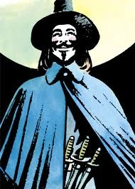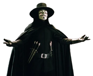 V est l'un des deux principaux protagonistes des romans graphiques V pour Vendetta et son adaptation cinématographique de 2006. C'est un énigmatique justicier anarchiste et combattant de la liberté, facilement reconnaissable à son masque de Guy Fawkes et à ses vêtements sombres.